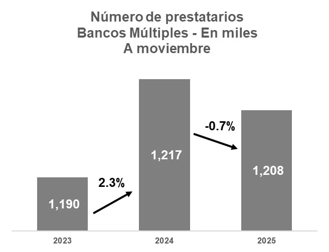 Los bancos priorizaron la colocación de cartera nueva y reposiciones de cartera en clientes de menor riesgo, esto significa que prefieren prestar a clientes ya conocidos o con amplia experiencia crediticia en el sistema financiero, esto explica el descenso en el número de prestatarios de la gestión 2025.